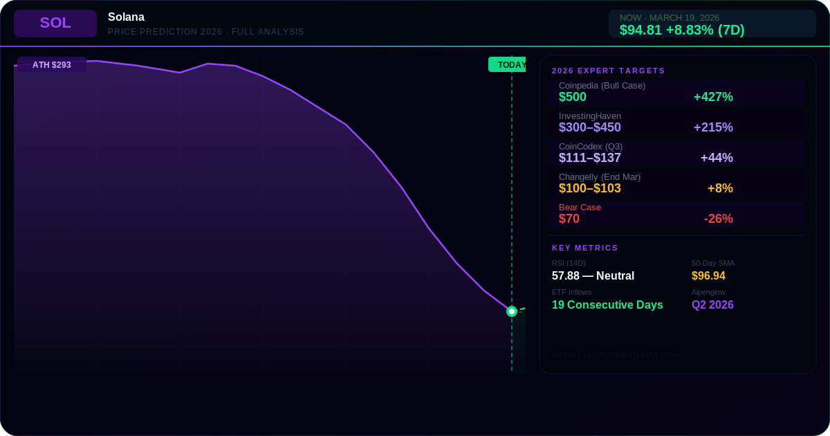 As of March 18, 2026, Solana is trading at $95.23 with a