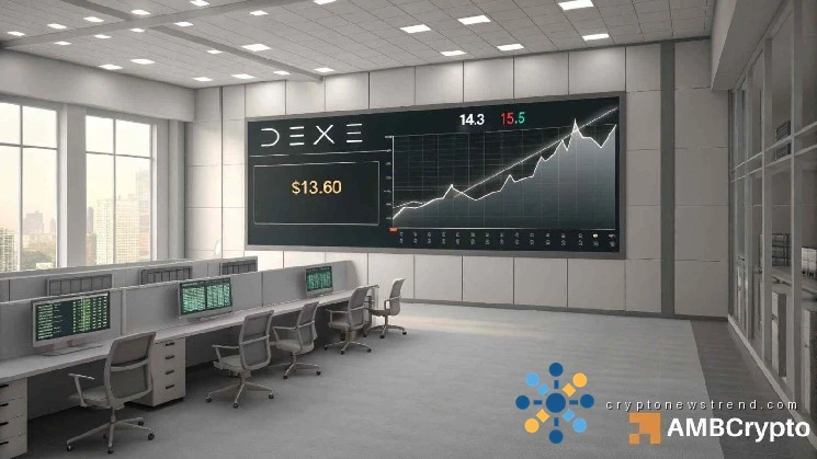 DeXe [$DEXE] subió un 15% en las últimas 24 horas, llevando el precio a una zona de resistencia clave cerca de 13,60 dólares. En el momento de la publicación, la altcoin probó un máximo anterior que había limitado intentos de ruptura anteriores.