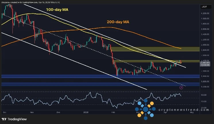 Lo que evita que la configuración sea completamente bajista es el RSI, que ha estado subiendo desde febrero y ahora se mantiene por encima de 50 en el gráfico diario. Es un reflejo del constante impulso alcista que se está construyendo debajo de la superficie. La media móvil de 200 días (~$2,9k) y la zona de oferta de $2,8k se encuentran muy por encima, lo que representa los próximos objetivos significativos si la ruptura finalmente se confirma. Por debajo, 1,800 dólares sigue siendo la línea en la arena, con 1,600 dólares y 1,400 dólares como niveles de soporte más profundos.