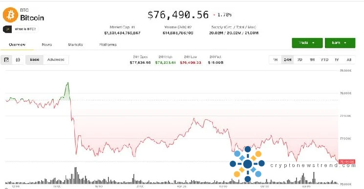 La caída se produce después de que Bitcoin no lograra superar dos veces el nivel de resistencia de $ 80,000 durante la semana pasada, y el intento más reciente ocurrió durante el horario asiático del lunes.