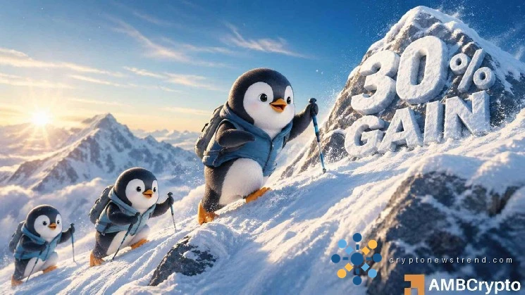 Meanwhile, the technical indicator Average Directional Index (ADX) has reached 30.31 as of writing, indicating that $PENGU has strong directional strength.