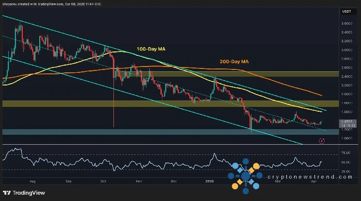 The mentioned $1.80 level remains the first critical threshold, and a sustained close above it would be the earliest sign of a structural shift. To the downside, the $1.20 support zone is the line in the sand. It held during February’s capitulation but might once again be approached as the price drifts lower.