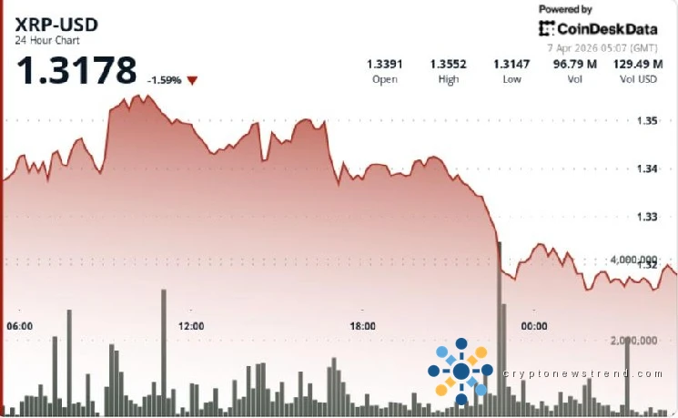 $XRP fell 1.9% to $1.31 after failing to hold above $1.35