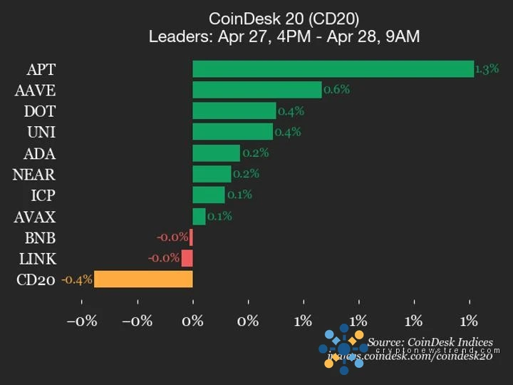 В своем последнем ежедневном анализе рынка CoinDesk Indices предоставляет углубленную оценку лучших и отстающих в индексе CoinDesk 20. По последним данным, индекс упал на 0,4% до 2071,97, что соответствует снижению на 9,25 пункта с 16:00. Крайний срок по восточному времени в пятницу. Более внимательное изучение показывает, что почти половина перечисленных активов, восемь из 20, игнорируют тенденцию к снижению и регистрируют рост. Aptos (APT) лидирует с ростом на 1,3%, за ним следует Aave (AAVE), показавший рост на 0,6%. И наоборот, Stellar (XLM) и Hedera (HBAR) находятся на противоположном конце спектра со снижением на 1,7% и 0,9% соответственно. Индекс CoinDesk 20 — это широко признанный эталон, который торгуется на различных платформах и охватывает несколько географических регионов по всему миру.
