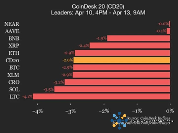 رہنما: قریب (+0.0%) اور AAVE (-0.1%)۔ پیچھے رہ جانے والے: DOT (-11.5%) اور ADA (-6.8%)۔