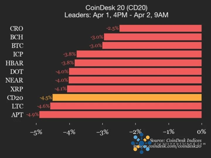 CoinDesk Indexes اپنی روزانہ مارکیٹ اپ ڈیٹ پیش کرتا ہے، CoinDesk 20 انڈیکس میں لیڈروں اور پیچھے رہ جانے والوں کی کارکردگی کو نمایاں کرتا ہے۔