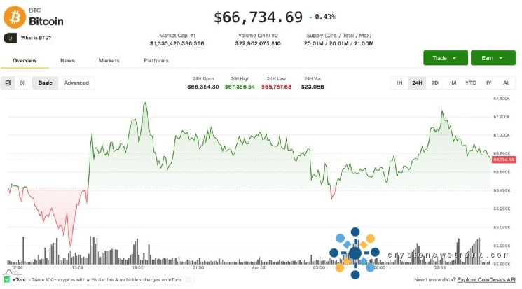 کرپٹو مارکیٹ نے جمعہ کے روز بدستور خرابی کی علامتیں ظاہر کرنا جاری رکھیں، ایک تجارتی حد کے درمیان بٹ کوائن کی ٹریڈنگ $67,000 کے ساتھ جو فروری کے اوائل تک پھیلی ہوئی تھی۔