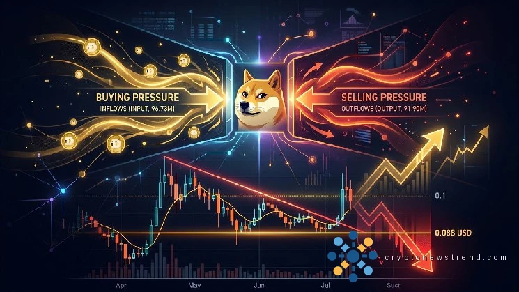 Dogecoin ایک دوراہے پر ہے جہاں بہاؤ ڈیٹا سپلائی اور ڈیمانڈ کے درمیان تقریباً کل برابری کو ظاہر کرتا ہے۔ اس کمپریشن کی ریزولیوشن کا انحصار بیلوں کی حقیقی حجم کو انجیکشن کرنے کی صلاحیت پر ہوگا۔