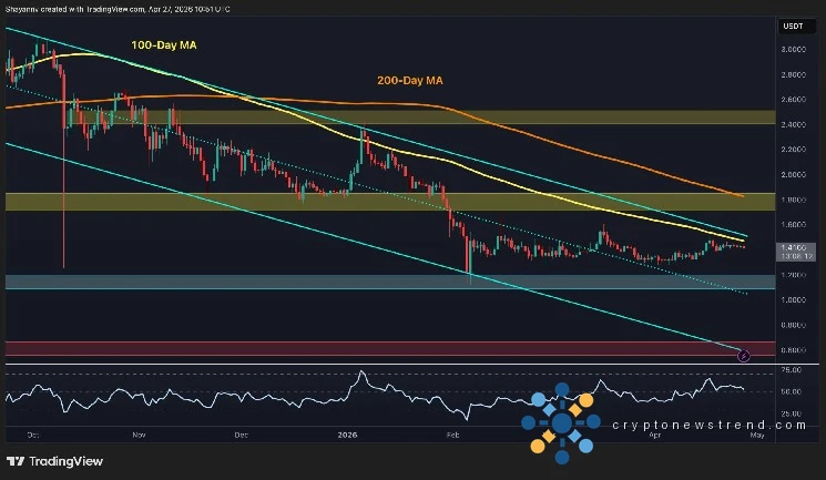 روزانہ $1.80 سے اوپر کی تصدیق شدہ بندش اس تصحیح میں پہلا بامعنی تکنیکی وقفہ ہوگا، جو $2.40 سپلائی زون کی طرف دروازہ کھولے گا جہاں ایک بھاری ڈسٹری بیوشن بینڈ بیٹھا ہے۔ منفی پہلو پر، حالیہ ہفتوں میں قیمت کا دوبارہ دعویٰ کرنے والی ٹرینڈ لائن اور فروری میں $1.20 کی کم ترین منزل اب بھی مشکل ہے۔