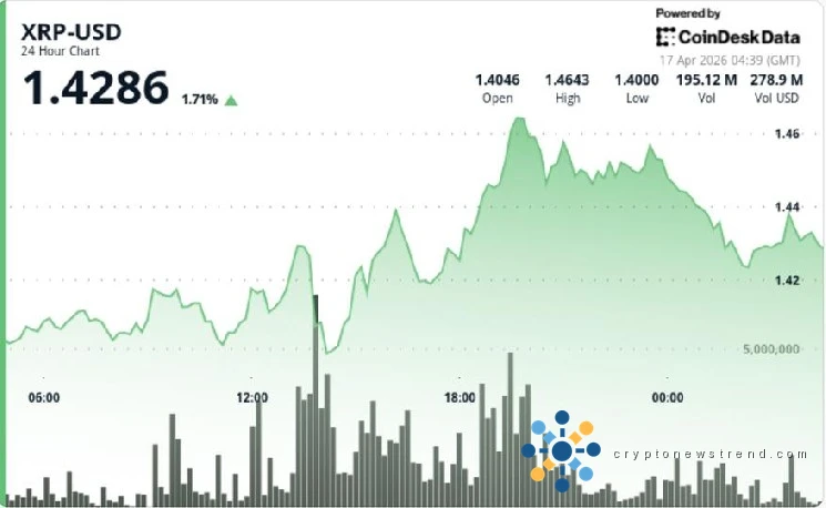 • 关键信号是相对强度。即使没有强劲的成交量支撑,XRP 的表现也优于同行。• 成交量仍然低迷,约为周平均水平的 70%,这限制了这一走势背后的信念。• 该结构显示出更高的低点,但阻力继续在 1.44 美元附近吸收上行空间。• 这种组合通常预示着盘整,而不是确认的突破。